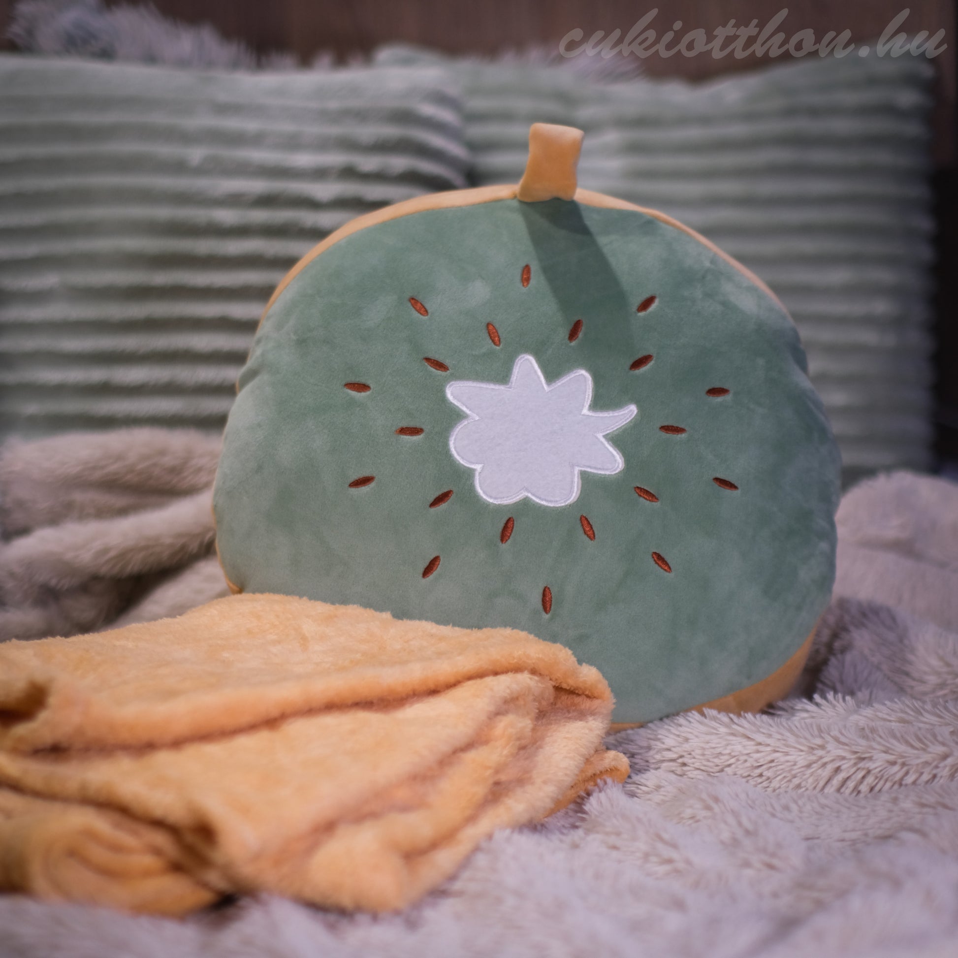 Měkký a pohodlný, 35x35 cm polštář ve tvaru ovoce s přikrývkou 160x110 cm, který je ideálním společníkem pro odpočinek nebo jako dekorace. S veselým a barevným designem oživí místnost a zároveň poskytuje praktické řešení pro chladné dny. Ať už jahoda, kiwi nebo pomeranč, tato sada je ideální volbou pro děti i dospělé!